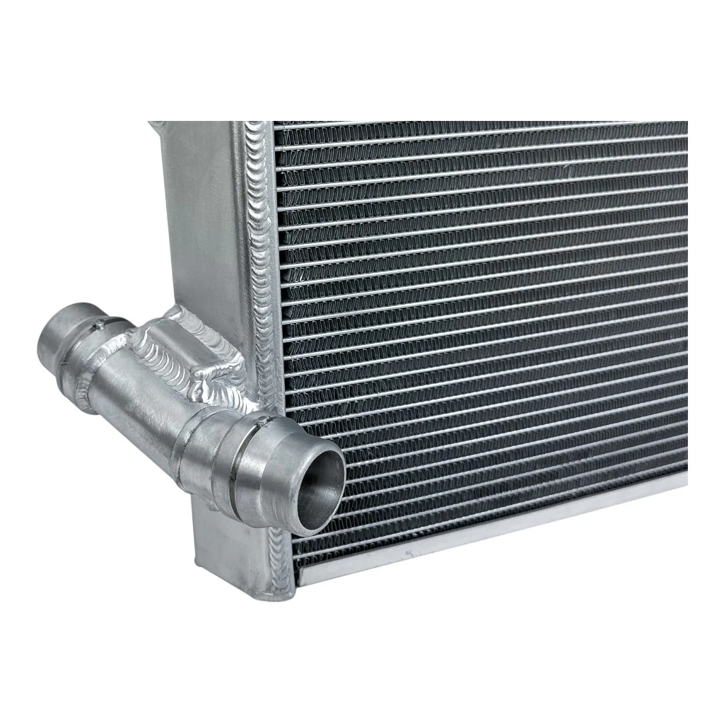 Повністю алюмінієва конструкція, зварена методом TIG, підвищує загальну міцність і довговічність радіатора — він розрахований на екстремальні навантаження та інтенсивне водіння. Радіатор встановлюється в штатне місце без будь-яких доопрацювань або підрізування.