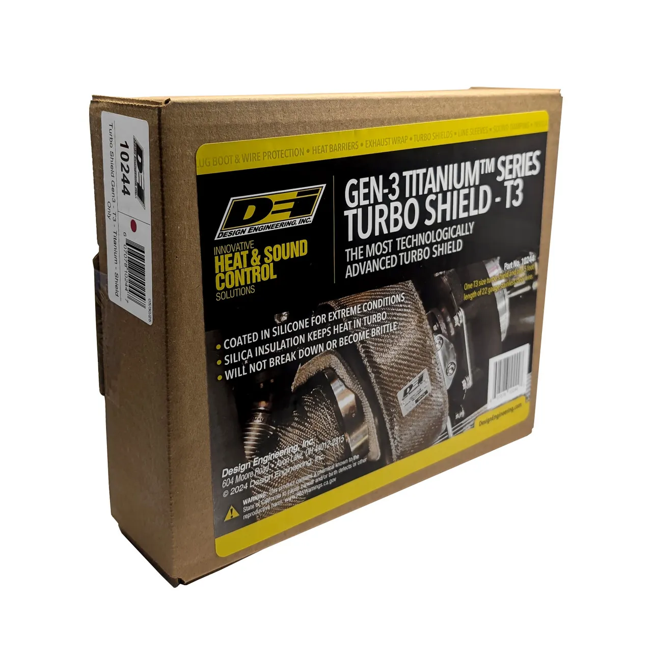 Защитный кожух для турбокомпрессора DEI 010244 GEN-3 Titanium T-3 Turbo Shield поможет вашему турбокомпрессору T3 быстрее раскручиваться и минимизировать нагрев в моторном отсеке. Этот защитный кожух имеет внешнюю оболочку с силиконовым покрытием, предотвращающим истирание, и закрывает швы, делая их более чем в 4 раза прочнее. Изоляционный слой изготовлен из диоксида кремния, обладающего низкой теплопроводностью и удерживающего тепло внутри кожуха и корпуса турбокомпрессора. Внутренний слой из нержавеющей стали и ткани улучшает изоляционные свойства, а также повышает прочность, долговечность и теплоизоляционные характеристики. Внутренний слой изготовлен из нержавеющей стали, стекловолокна и силикона для максимальной прочности, долговечности и тепловых свойств. В совокупности эти слои позволяют этому защитному кожуху выдерживать прямой нагрев до 1800°F и лучистый нагрев до 2500°F.
