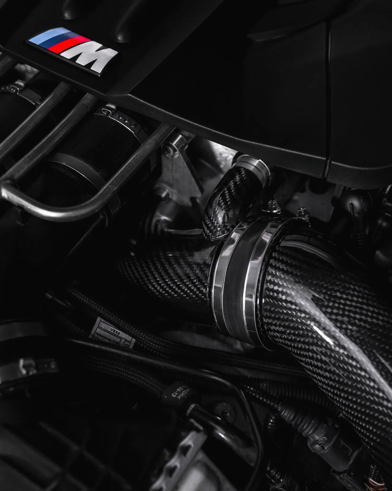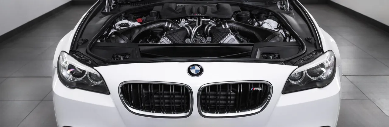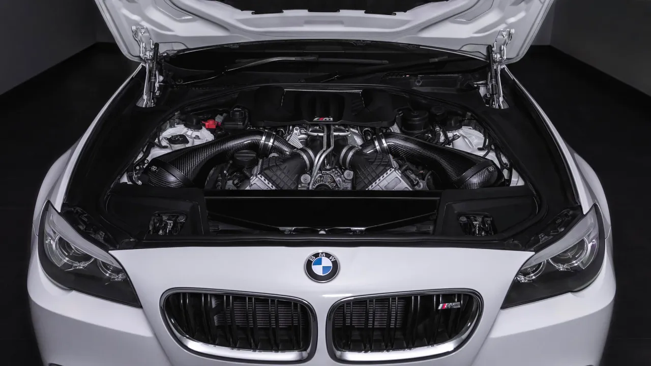 Заводская впускная система системы F10 M5 не имеет герметичной конструкции. Передний патрубок напрямую соединяется с передними воздухозаборниками, которые, в свою очередь, соединены с передними воздухозаборниками, расположенными за решетками радиатора. Также имеется второй патрубок, который выходит в моторный отсек напротив подкрылка, а его собственный впускной коллектор выступает в заводской воздушный короб.